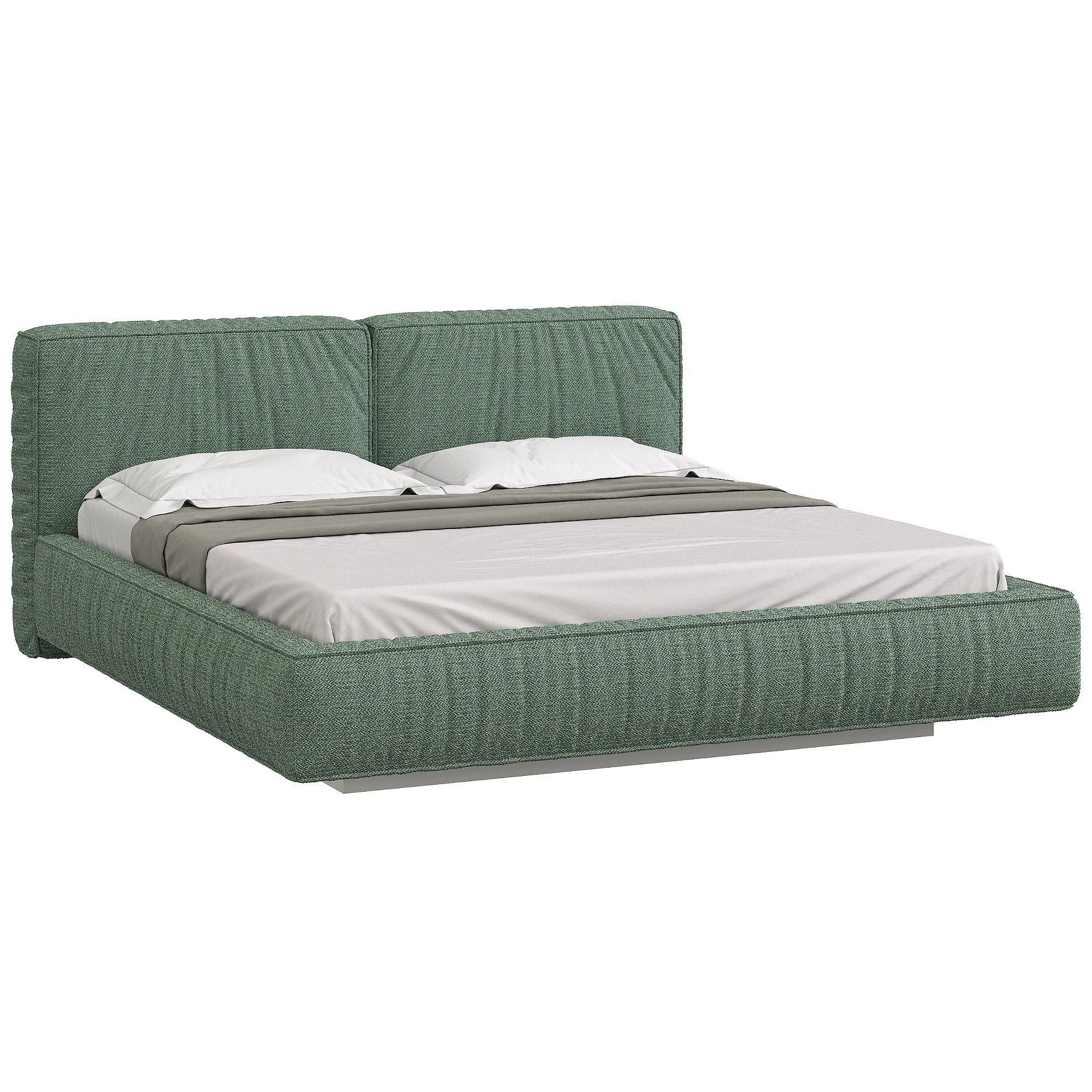 Мягкое, объёмное изголовье и борта с декоративными складками создают ощущение уюта и защищённости, помогая расслабиться после насыщенного дня. Ортопедическое основание с металлическим каркасом и ламелями из натурального дерева обеспечивает надёжную поддержку для полноценного сна. Высота царг 15 см от пола облегчает уборку и поддержание чистоты.
